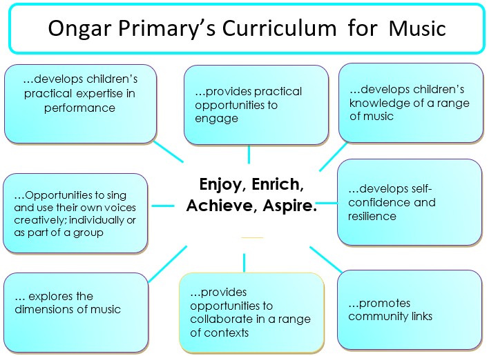 Pupils are encouraged to sing and to enjoy listening to a wide variety of music. Singing, rhythm, pitch and percussion work form an important part of the musical life of the school. Pupils are able to join in with 'performances' and experience the enjoyment and responsibility of belonging in a production. Pupils are given the opportunity to listen to a wide range of music from a variety cultures